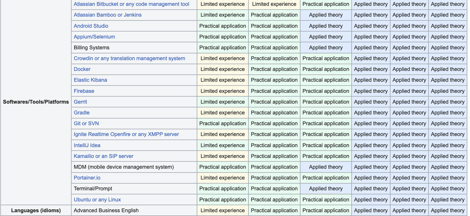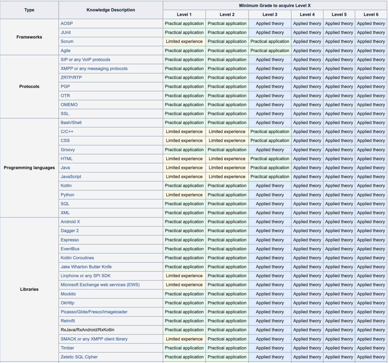 In order to progress in our development path and Level Up or Step Up, our Android Developers must: